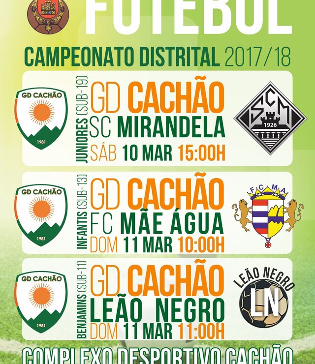 Futebol: Campeonato Distrital em Juniores, em Infantis e em Benjamins (G. D. Cachão) |