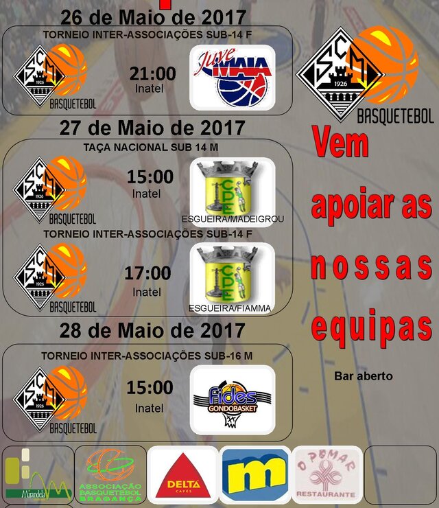 Basquetebol: Torneio Inter-Associações em Sub 14 F e Sub 16 M; e Taça Nacional em Sub 14 M (S. C. Mirandela) |