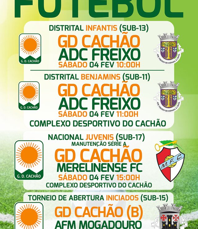 Futebol: Distrital de Infantis, Benjamins e Iniciados;e Nacional de Juvenis (G. D. Cachão) |