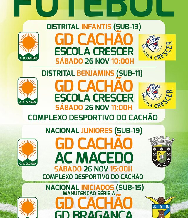 Futebol: Distrital de Infantis, Benjamins e Juniores, Nacional de Iniciados (G. D. Cachão) |