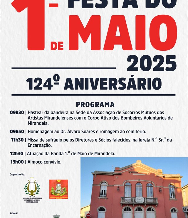 Festa do 1º de maio | 124ª Aniversário da Associação de Socorros Mútuos dos Artistas Mirandelenses |