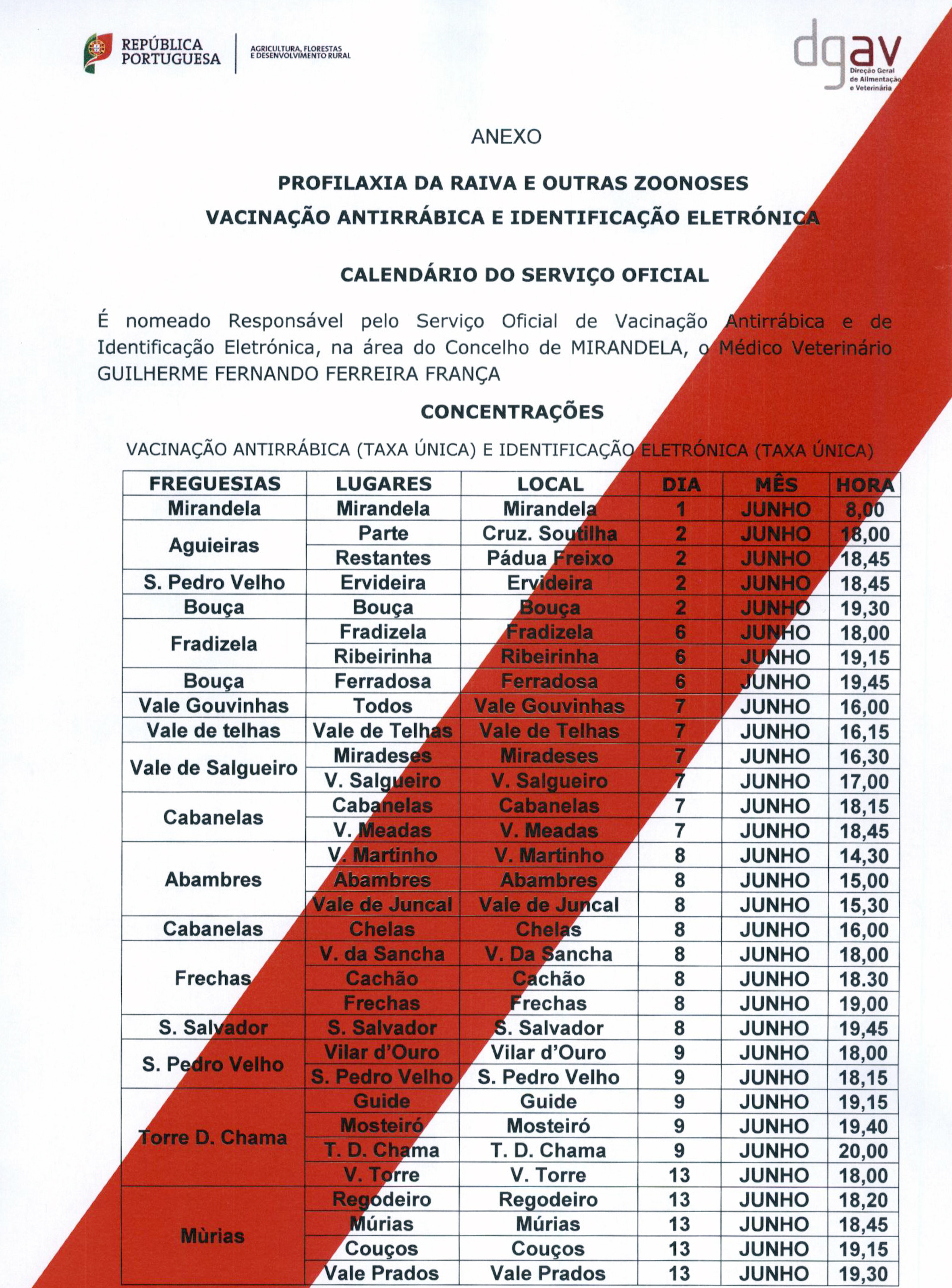 Calendário do Serviço Oficial de Vacinação para 2017 |