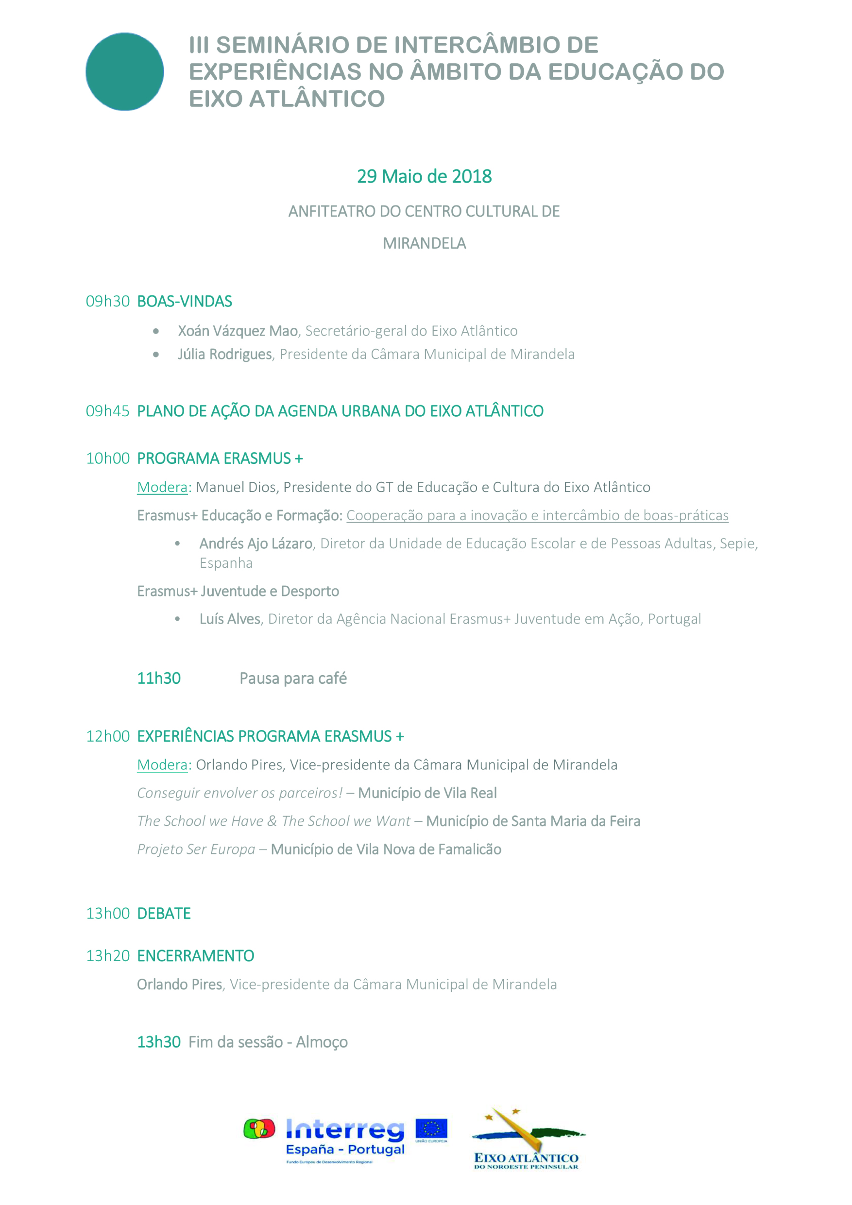 III Seminário de Intercâmbio de Experiências no Âmbito da Educação do Eixo Atlântico |