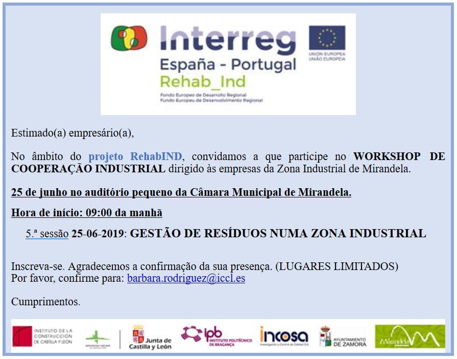 Projeto RehabIND - 5.ª sessão de workshops de cooperação industrial |