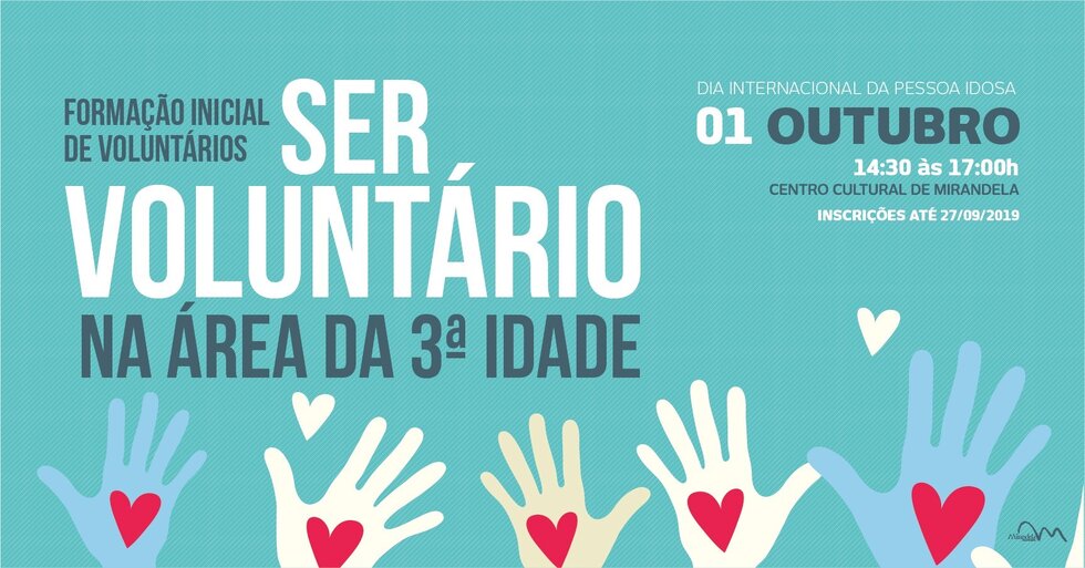 O Banco Local de Voluntariado da Câmara Municipal de Mirandela promove uma ação de formação destinada a voluntários inscritos no Banco Local de Voluntariado de Mirandela (B.L.V.M.), comunidade em geral, associações e instituições com interesse em desenvolver atividades de voluntariado na área da terceira idade.