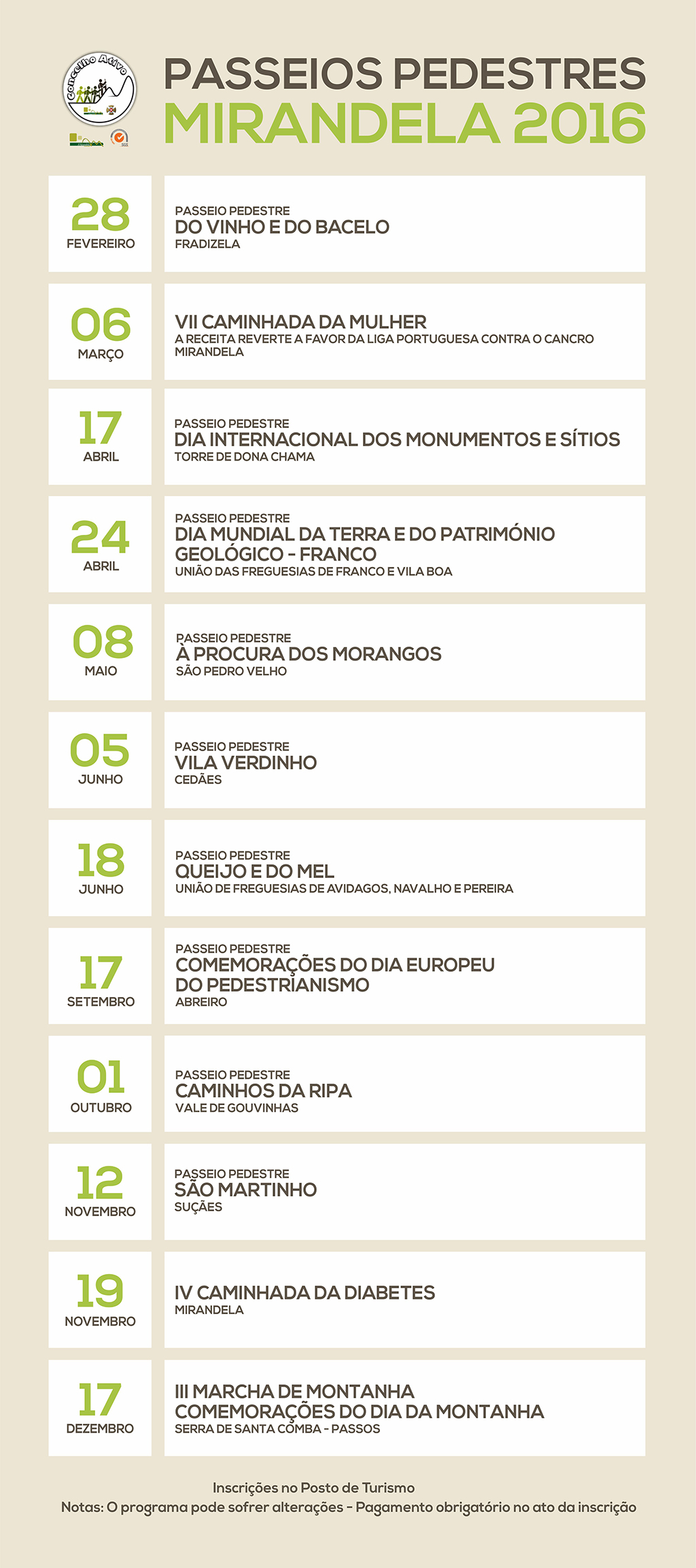 Passeios Pedestres 2016 |
