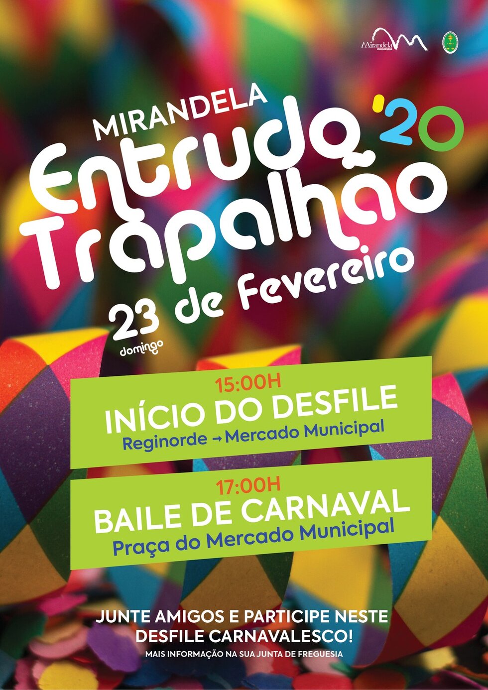 As ruas de Mirandela vão transbordar de folia, cor e muitas tradições das freguesias do concelho. Junte amigos e faça parte deste desfile carnavalesca!