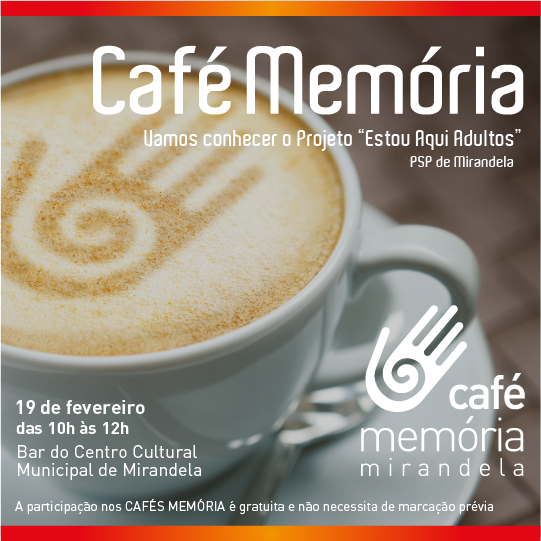 19 de fevereiro, o Café Memória estará presente no Bar do Centro Cultural de Mirandela para dar a conhecer o projeto "Estou Aqui Adultos" da Polícia de Segurança Pública. ☕️