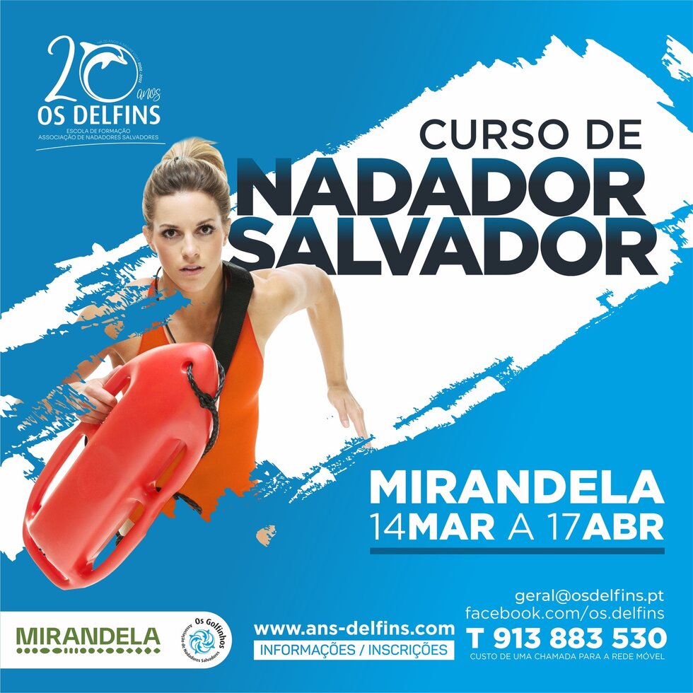 Promovido pela Associação de Nadadores-Salvadores - Os Delfins, o curso de nadador salvador decorrerá na cidade de Mirandela, entre os dias 14 de março e 17 de abril de 2023. Os detentores desta formação específica, necessária para a execução de funções profissionais, poderão vir a integrar a bolsa de nadadores salvadores para a época balnear de 2023.