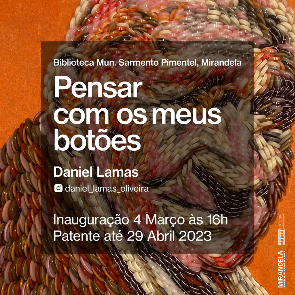 De raízes transmontanas, Daniel Lamas apresenta a exposição "Falar com os meus botões" na Biblioteca Municipal Sarmento Pimentel - Mirandela. Usando botões como “tinta”, o artista tira novo partido das suas diferentes formas, cores e texturas, criando grandes imagens com aquilo que é pequenino.