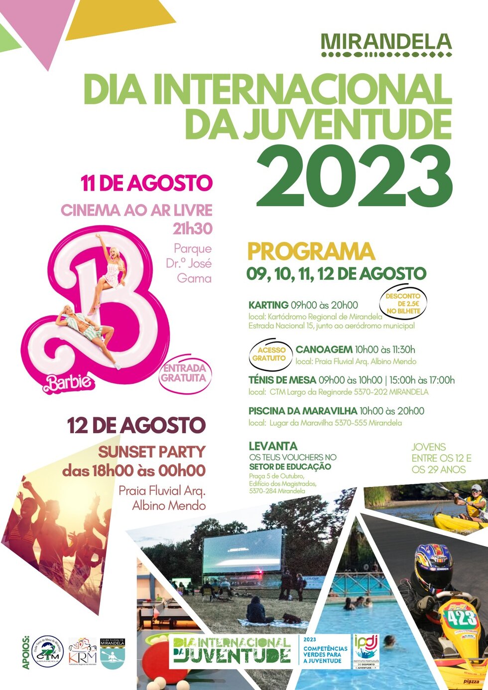 Para assinalar o Dia Internacional da Juventude, entre 09 e 12 de agosto, a Câmara Municipal de Mirandela oferece-te vouchers para que possas usufruir gratuitamente, ou com descontos, de diversas atividades: