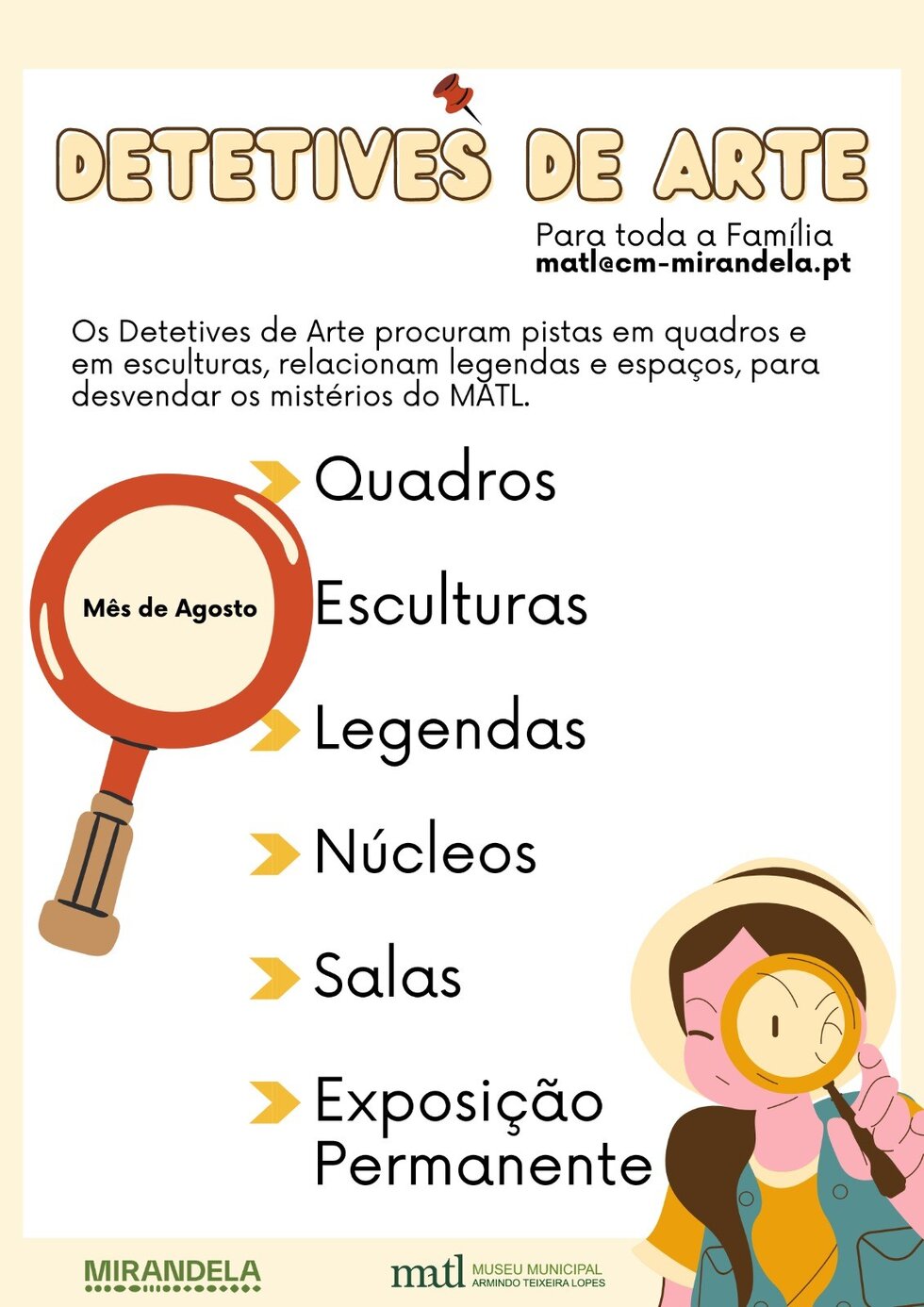 Durante o mês de agosto, os Detetives de Arte podem procurar pistas em quadros e esculturas, relacionam legendas e espaços, para revelar os mistérios do MATL.