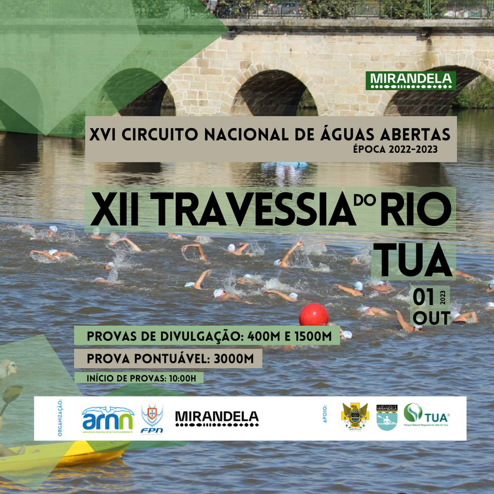 A cidade de Mirandela irá acolher no próximo dia 01 de outubro (domingo), a XII edição da Travessia de Águas Abertas designada por “Travessia do Rio Tua”. A prova será organizada pela Associação Regional de Natação do Nordeste e pelo Município de Mirandela contando com apoio da Federação Portuguesa de Natação. Prevendo a participação de 130 atletas federados e não federados de todos os pontos do pais e participação de atletas estrangeiros.