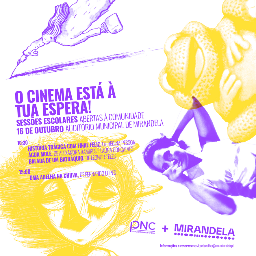 Em Mirandela, no dia 16 de outubro, o Plano entra em ação, durante a manhã, com a exibição de 3 curtas-metragens, vocacionadas para os alunos do 3º Ciclo: Balada de um Batráquio, de Leonor Teles (2016), Água Mole, de Alexandra Ramires (Xá) e Laura Gonçalves (2017) e História Trágica com Final Feliz, de Regina Pessoa (2005).