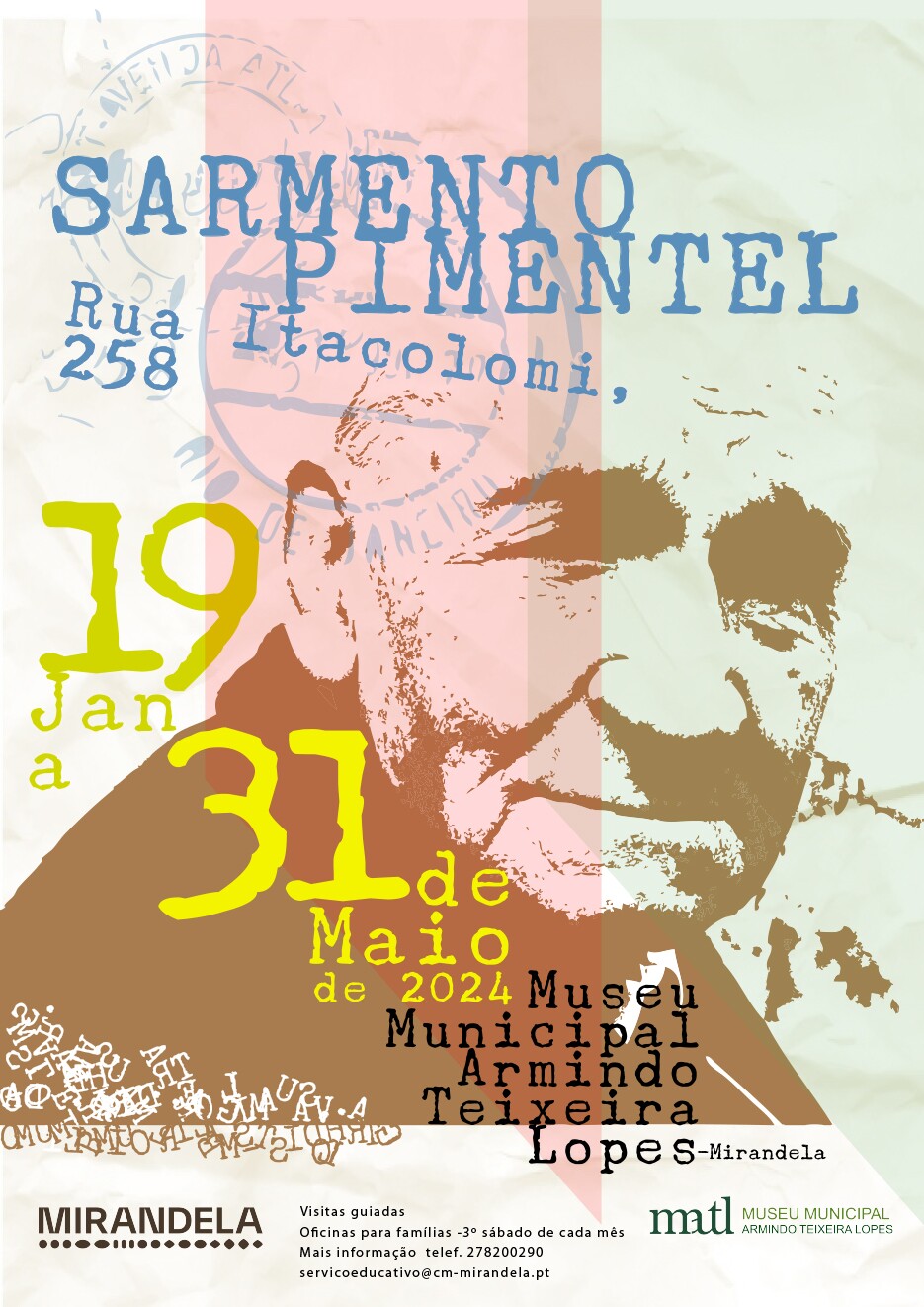 Proveniente de um projeto de mestrado para a UTAD acerca do espólio de Sarmento Pimentel, a exposição Sarmento Pimentel – Rua Itacolomi, 258, apresenta-se como eixo central das celebrações dos 50 anos do 25 de Abril em Mirandela. Trata-se de prestar homenagem a esta figura que, para além de ser o patrono da Biblioteca Municipal, que guarda o seu espólio, foi também o decano maior e líder da oposição à ditadura portuguesa no Brasil a partir de 1927. Pretende-se, a partir dela, fazer coincidir um conjunto de atividades que enalteçam este exilado político, festejando também a liberdade e a cultura para a democracia.
