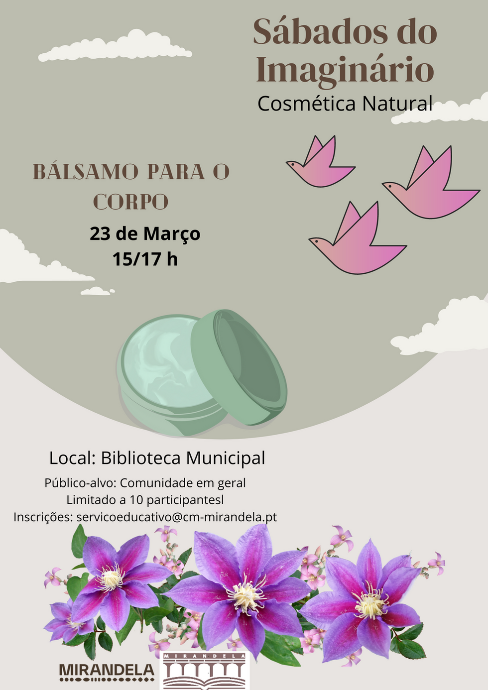Em março vamos continuar com o tema da cosmética natural e vamos produzir um bálsamo para o corpo.