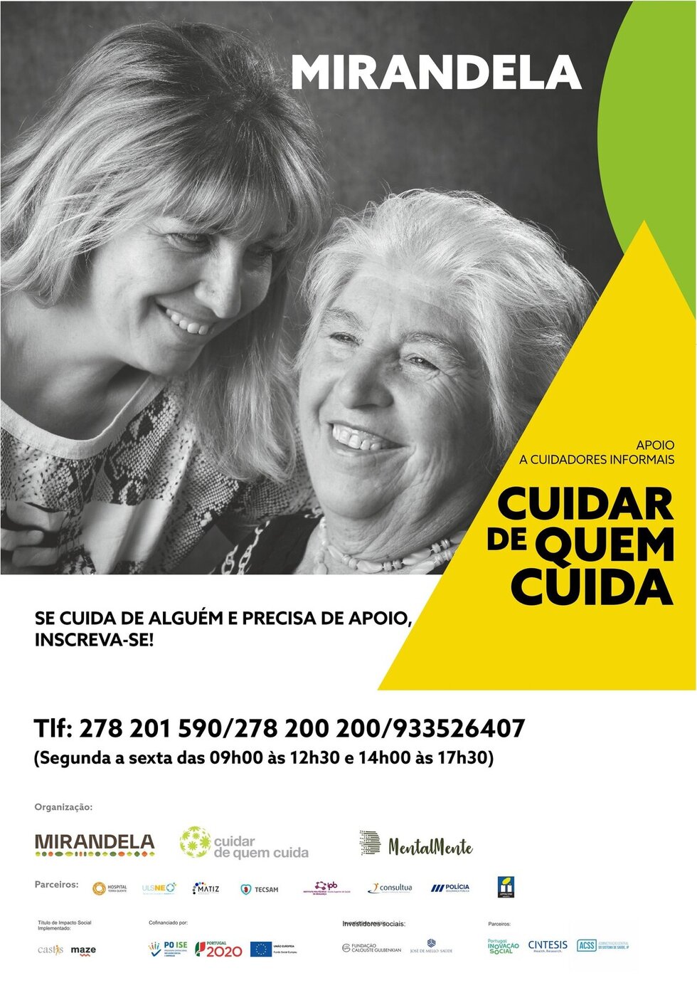 "Cuidar de Quem Cuida" mantêm-se abertas as inscrições para o grupo Psicoeducativo "Cuidar de Quem Cuida"para cuidadores informais, uma vez por semana, durante sensivelmente 2 meses, cuidadores informais têm oportunidade de fazer parte de um grupo psicoeducativo, onde uma equipa multidisciplinar dá "formação" e apoio a estes cuidadores, com o intuito de capacitá-los para as necessidades do seu dia-a-dia, bem como estratégias de comunicação, e auto-cuidado.