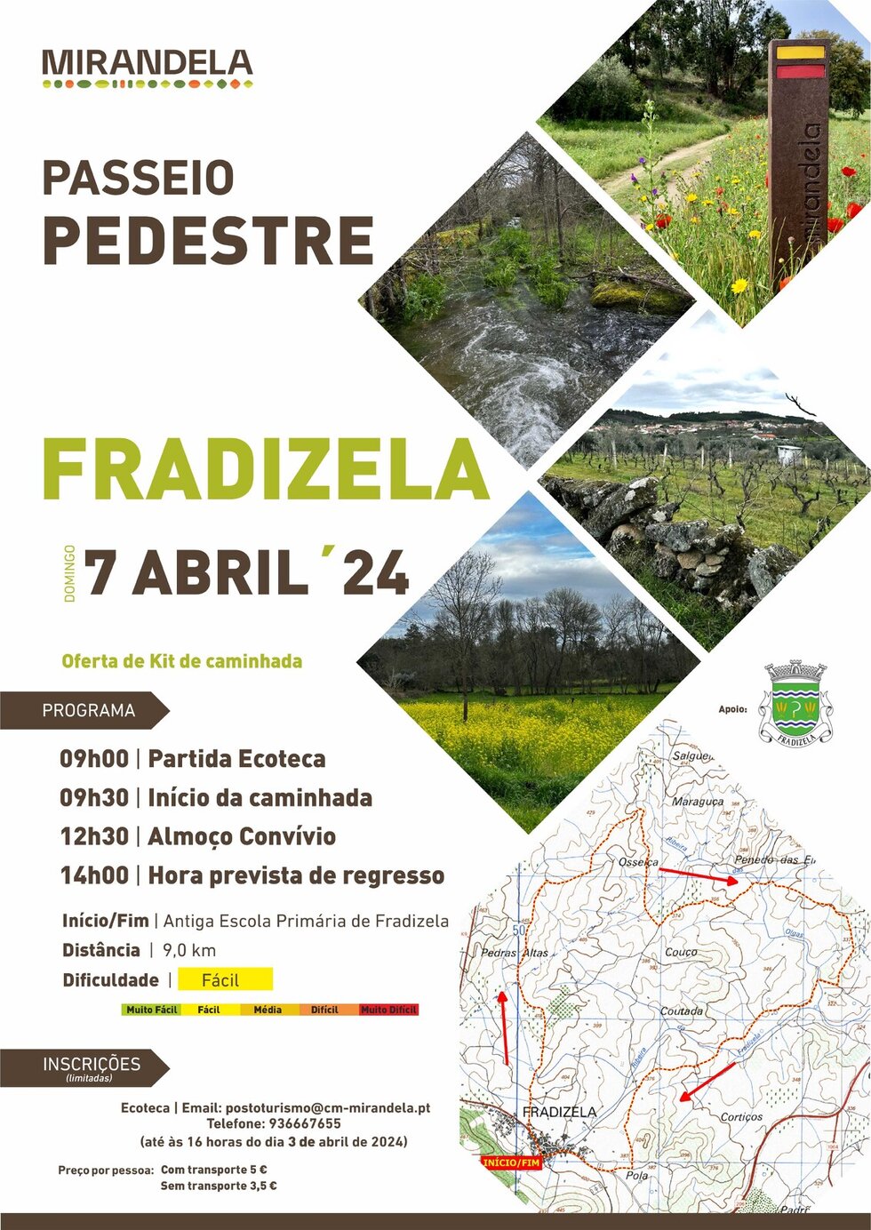 Passeio pedestre integrado na Feira do Vinho e do Bacelo da Fradizela, proporciona o contacto com a natureza e as bonitas paisagens desta freguesia.