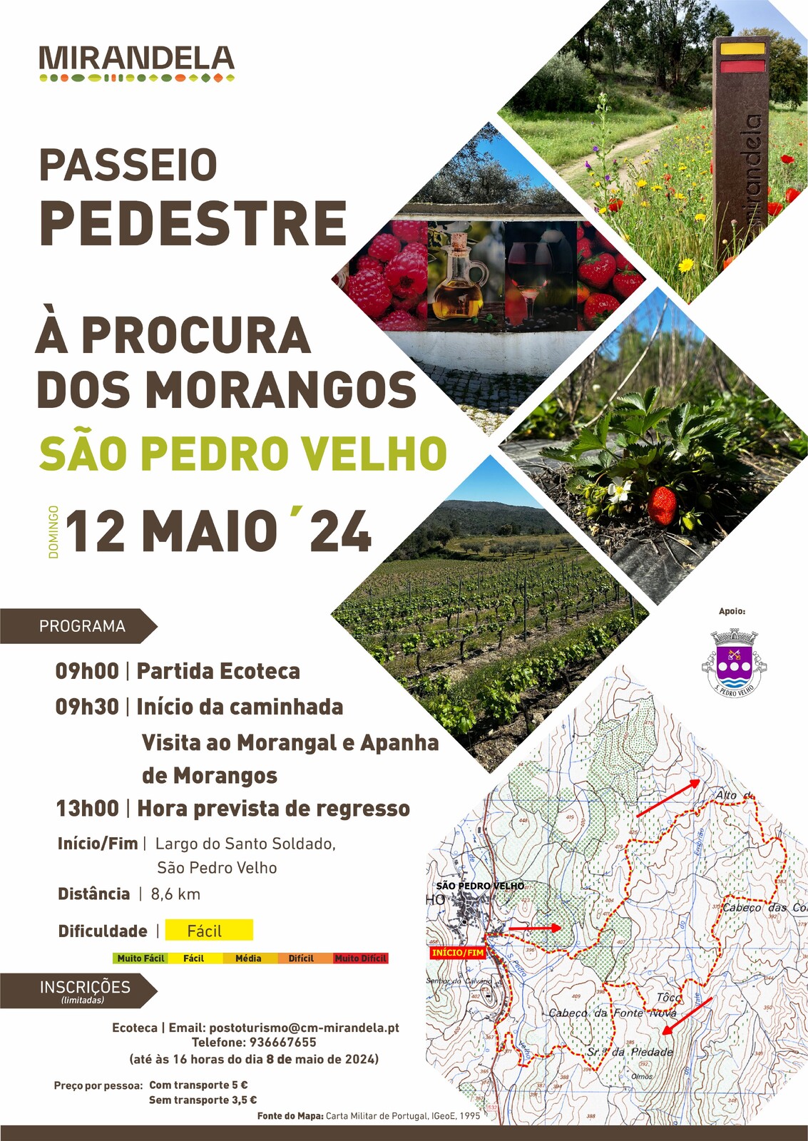 Passeio pedestre que privilegia o contacto com a natureza, a cultura, as pessoas e as tradições de S. Pedro Velho, com destaque para a cultura do vinho e do morango.