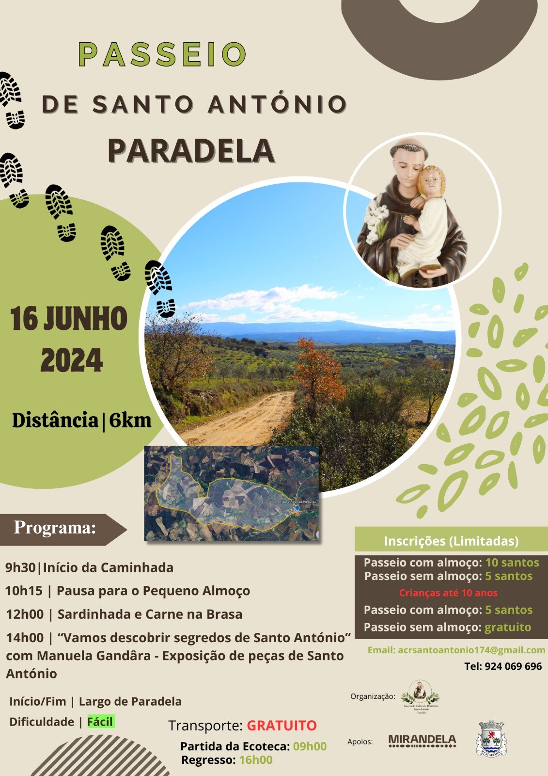 A Associação Cultural e Recreativa - Sto. António de Paradela promove a 16 de junho uma caminhada de 6 km pelas paiagens desta aldeia do concelho de Mirandela.