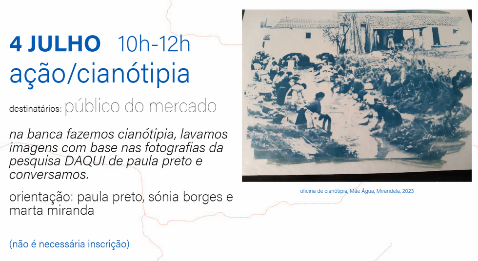 Na banca fazemos cianótipia, lavamos imagens com base nas fotografias da pesquisa DAQUI de Paula Preto e conversamos.