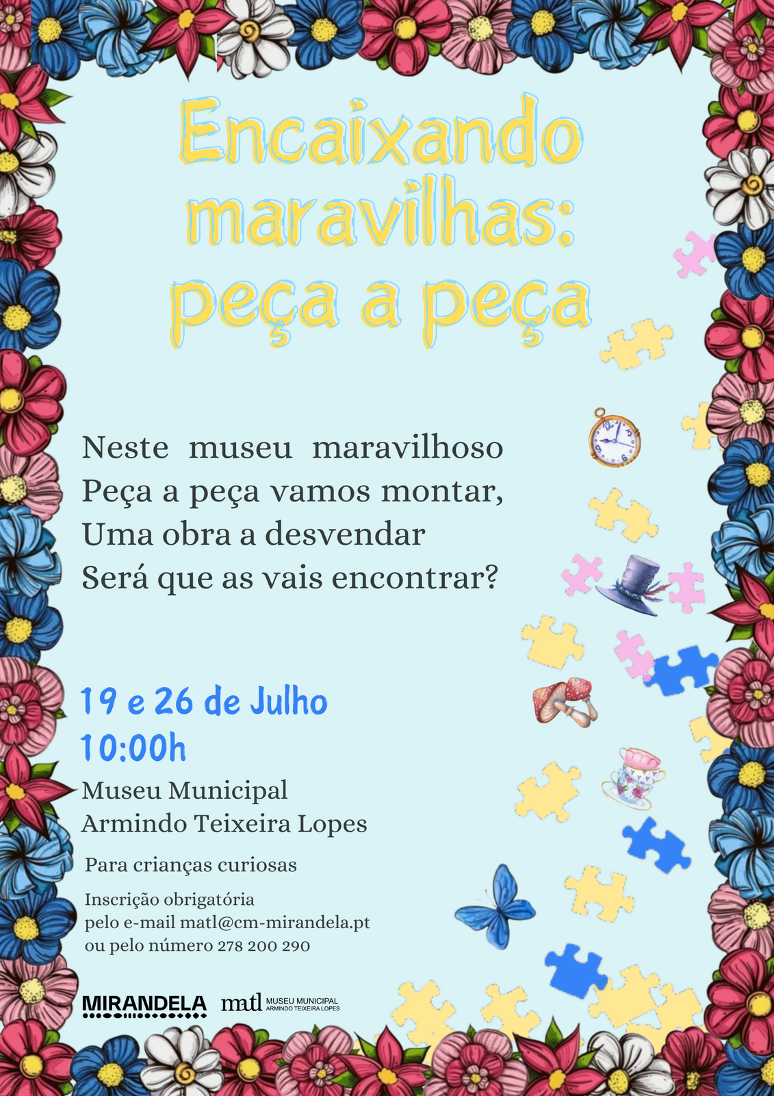 O MATL convida todas as crianças para uma manhã mágica, cheia de criatividade e diversão, inspirada no quadro que retrata um conto de Lewis Carroll. Peça a peça vamos construir uma história fantástica.