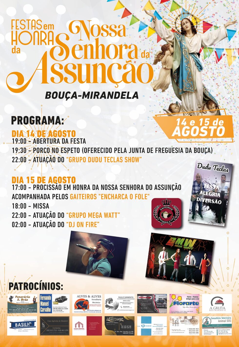 Festas em Honra da Nossa Senhora da Assunção, a realizar nos dias 14 e 15, na Bouça