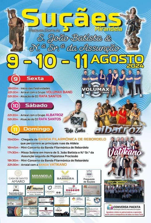 Festividades em honra de S. João Batista e Nª Srª da Assunção em Suçães nos dias 9, 10 e 11 de Agosto de 2024