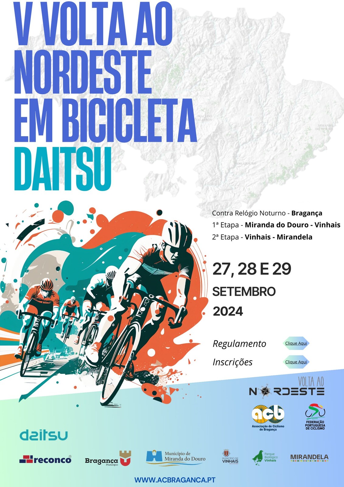 A V Volta ao Nordeste em Bicicleta está marcada para os dias 27, 28 e 29 de setembro de 2024, com inicío no dia 27 de setembro com um contrarrelógio em Bragança. É um evento que vai para a sua quinta edição, prometendo trazer muita emoção e competição aos entusiastas do ciclismo onde a organização pretende trazer mais participantes, visitar mais concelhos e continuar a fazer desta prova uma referência do ciclismo a nível nacional.