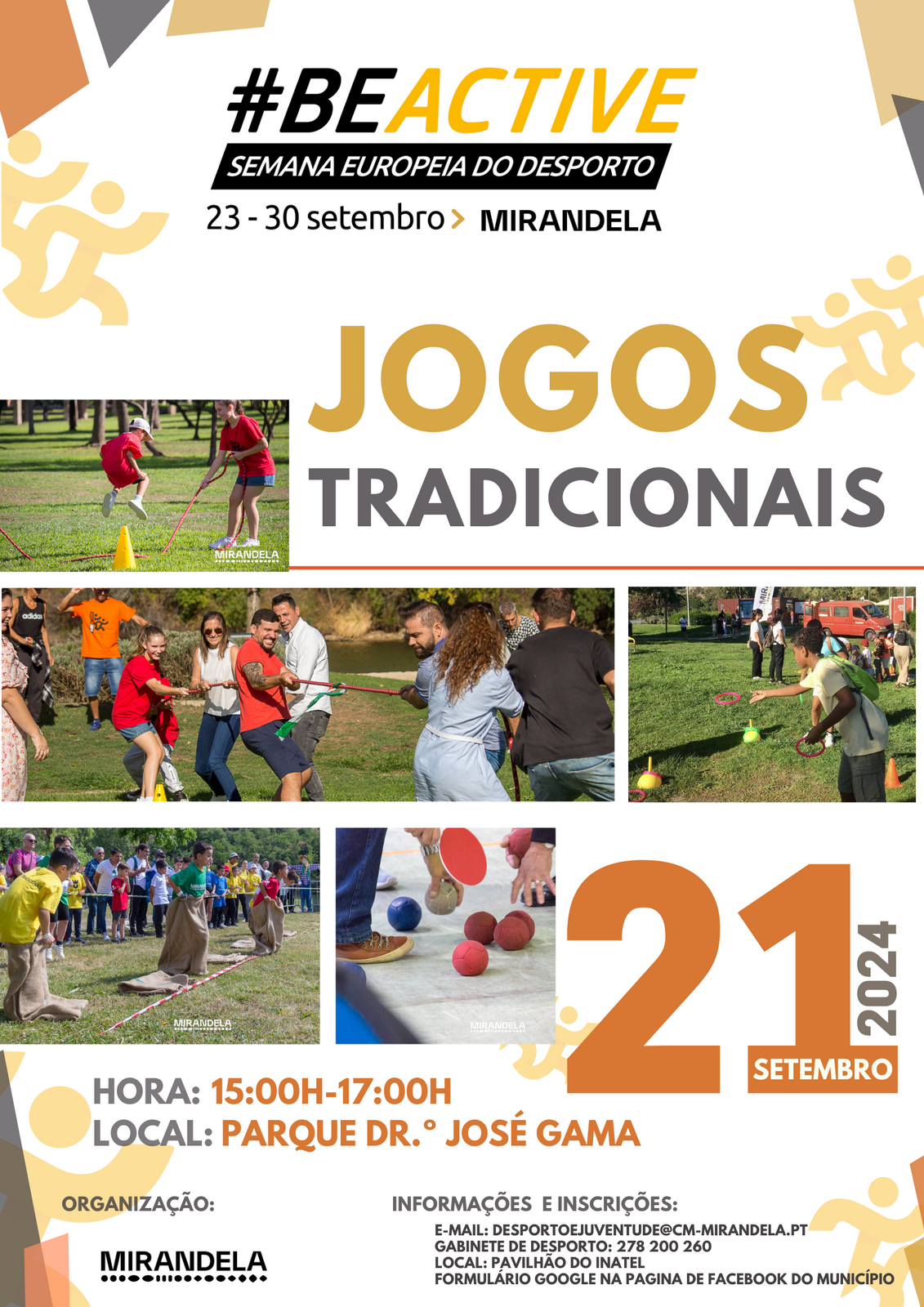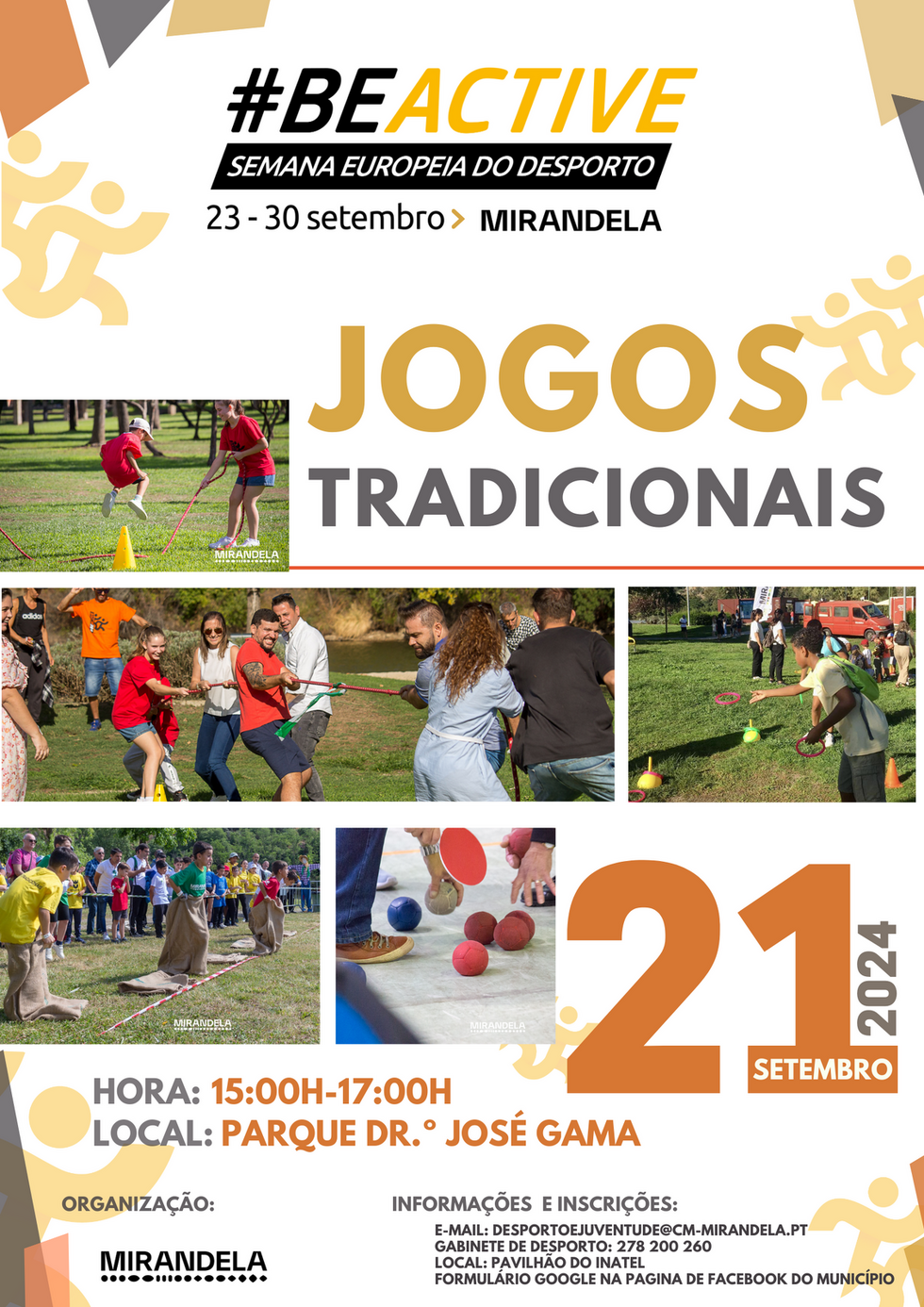 A tarde de 21 de setembro, marca o arranque da edição 2024 da Semana Europeia do Desporto com a atividade de “Jogos Tradicionais para Todos”, que promoverá um encontro de gerações, no Parque Dr. José Gama, onde poderão experienciar a prática múltiplos jogos tradicionais.