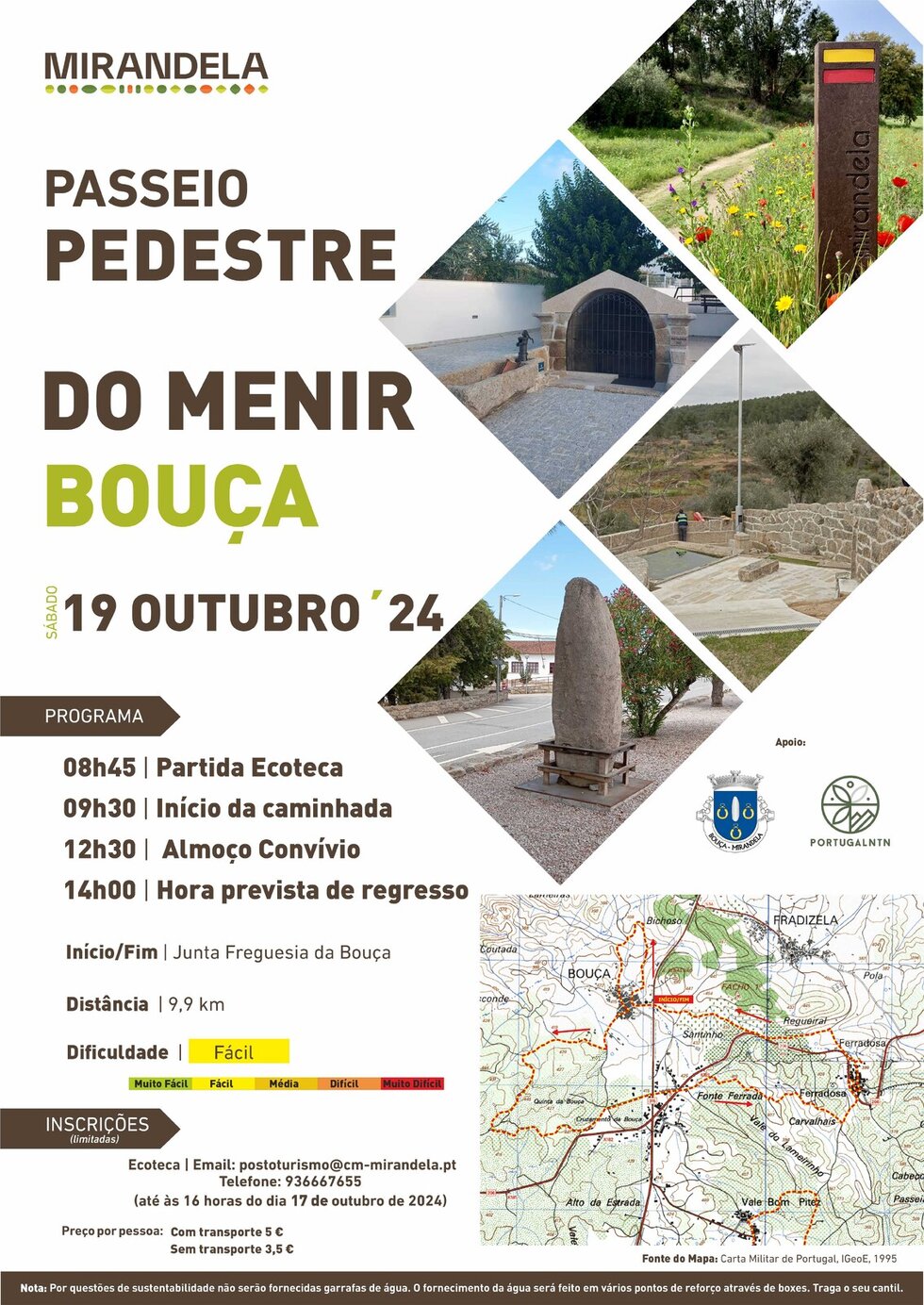 Inscreva-se até as 16 horas do dia 17 de outubro de 2024, pelo telefone 936 667 655, através do email postoturismo@cm-mirandela.pt ou presencialmente na Ecoteca de Mirandela.