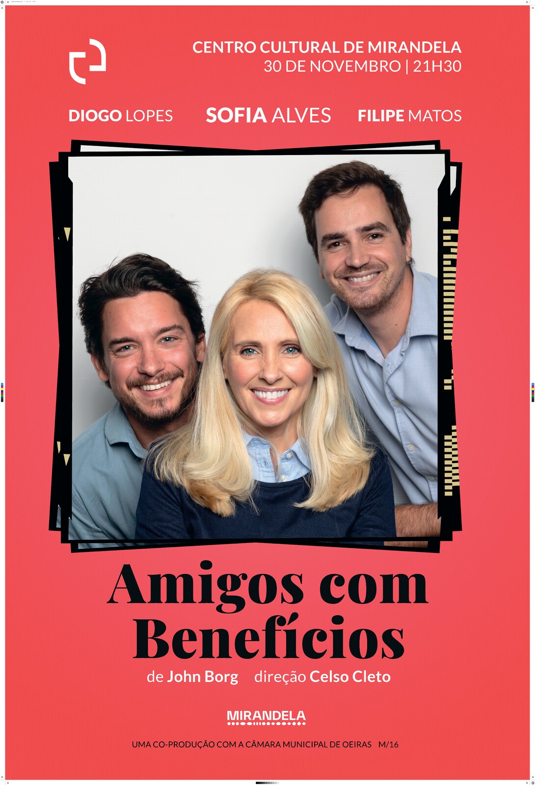Bilhetes à venda em https://ticketline.sapo.pt/evento/amigos-com-beneficios-87384 ou na bilheteira do Centro Cultural de Mirandela