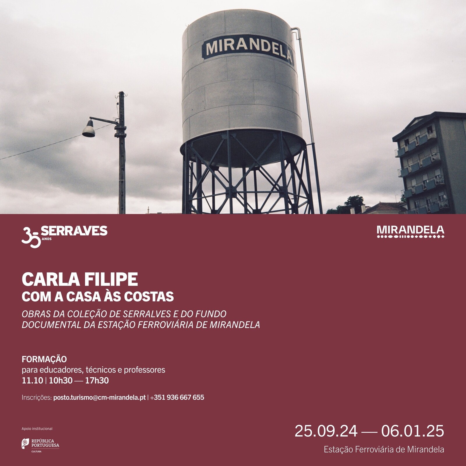 No dia 11 de outubro, na Estação das Artes, pode juntar-se a outros educadores, técnicos e professores para uma ação de formação teórica, dinamizada por Serralves, sobre as possíveis abordagens à exposição de Carla Filipe "Com a casa às costas - Obras da coleção de Serralves e do Fundo Documental da Estação Ferroviária de Mirandela" .