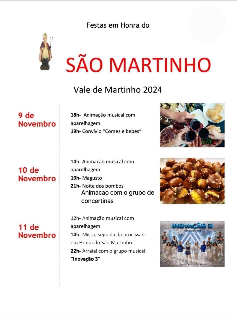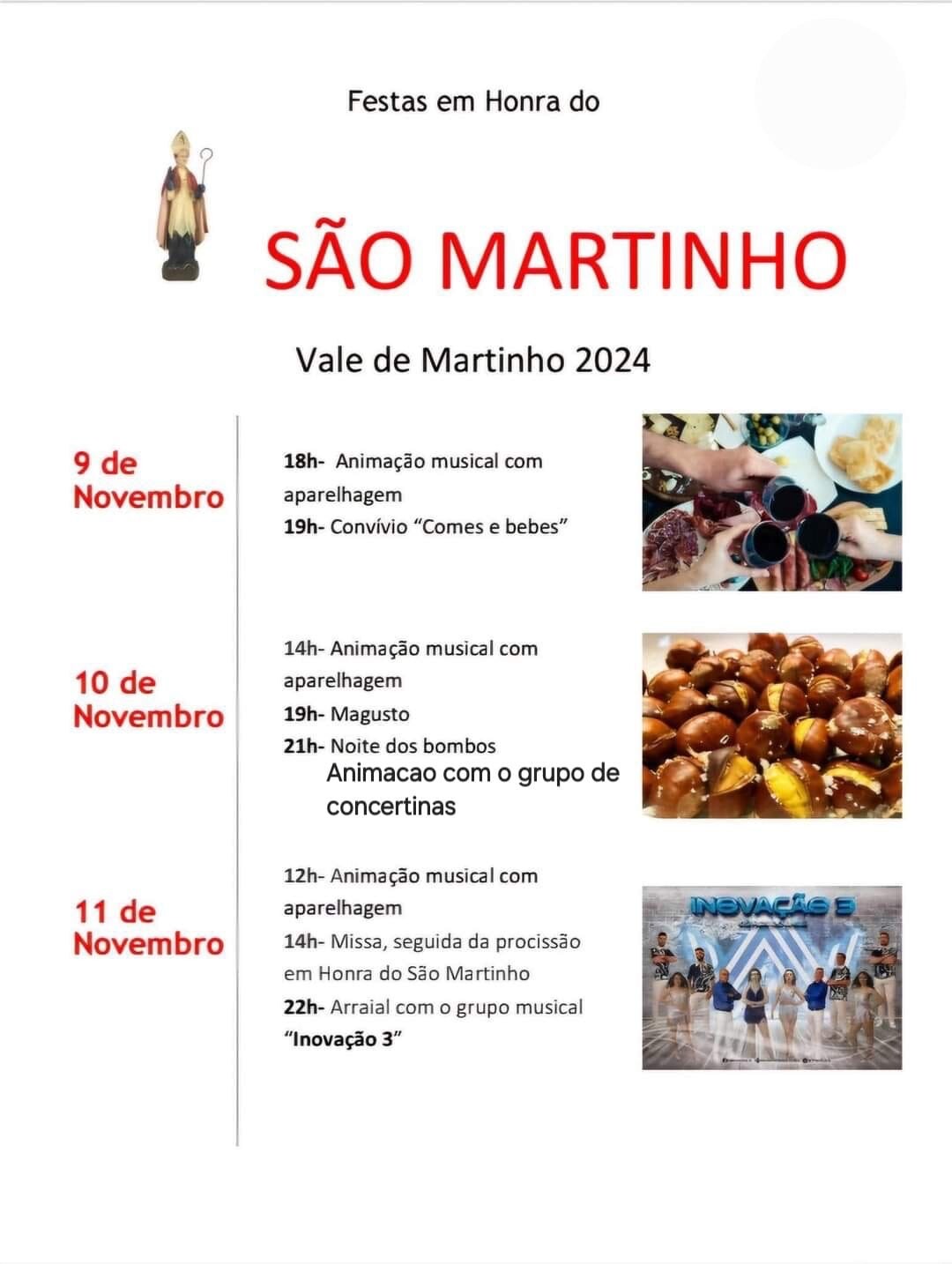 As Festas em Honra de São Martinho terão lugar em Vale de Martinho, de 9 a 11 de novembro. O espírito comunitário e a devoção ao santo padroeiro são o mote para esta festa. Este evento reúne a população e visitantes num ambiente de tradição e alegria.