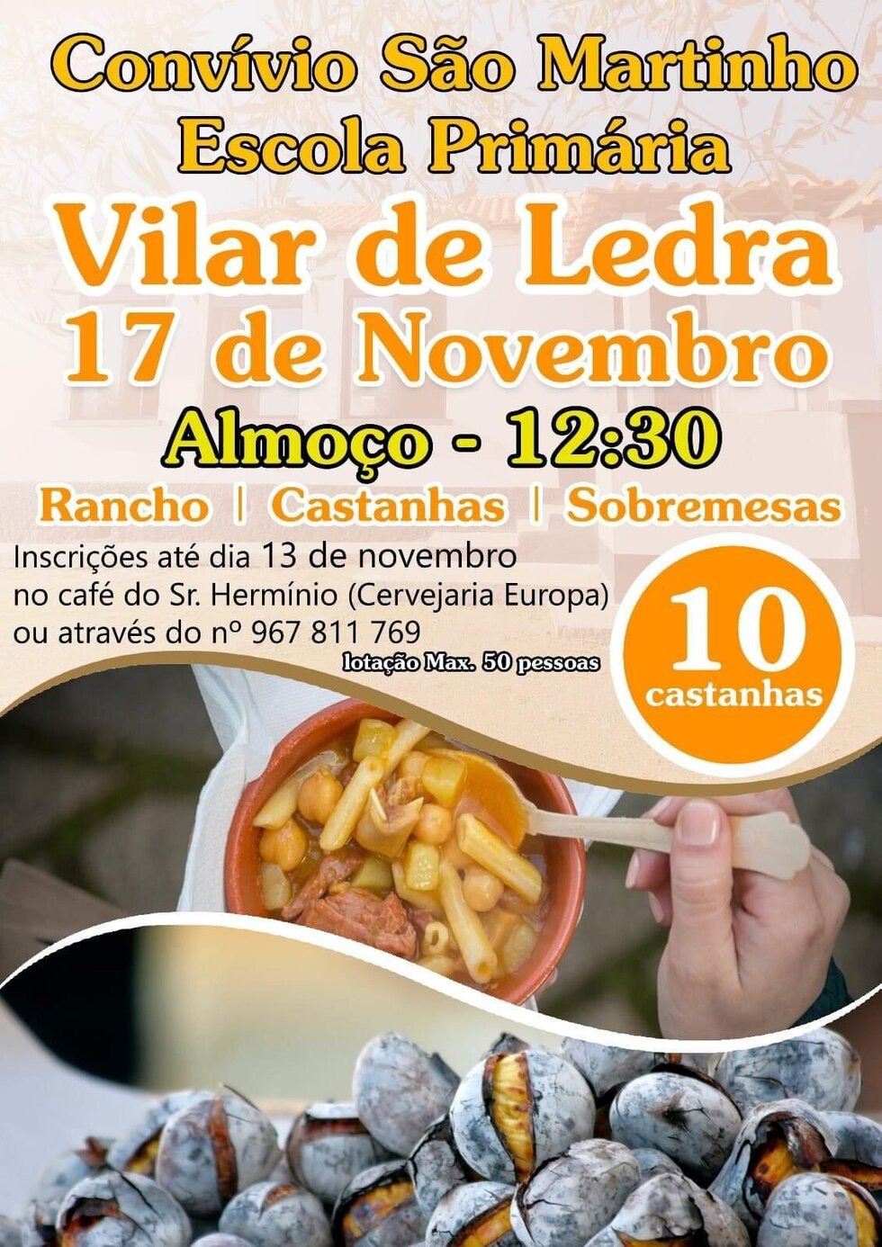 Reserve o dia 17 de novembro, às 12h30, para um almoço de São Martinho especial na Escola Primária de Vilar de Ledra!