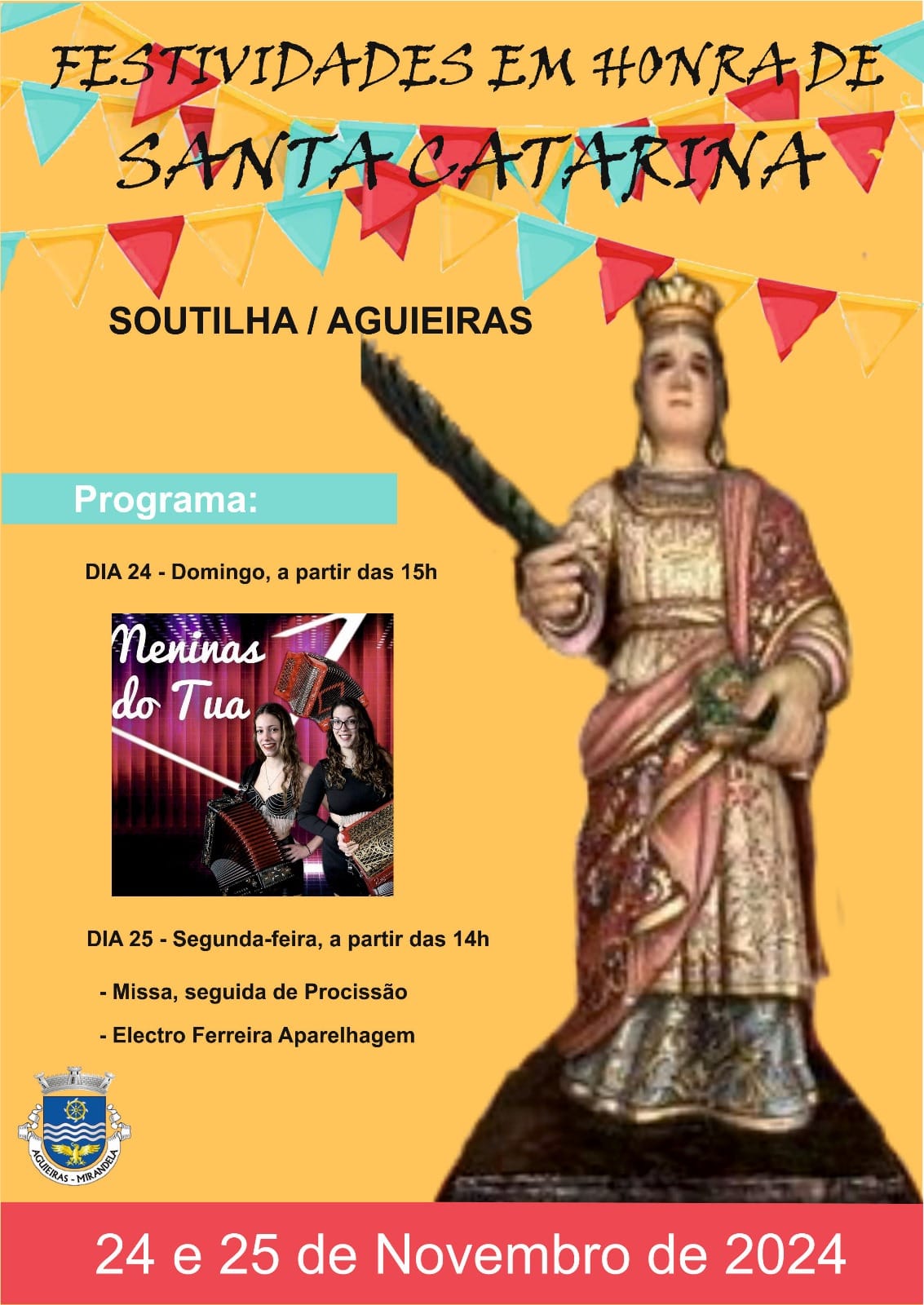 As festividades em honra de Santa Catarina, em Soutilha/Aguieiras, terão lugar nos dias 24 e 25 de novembro.