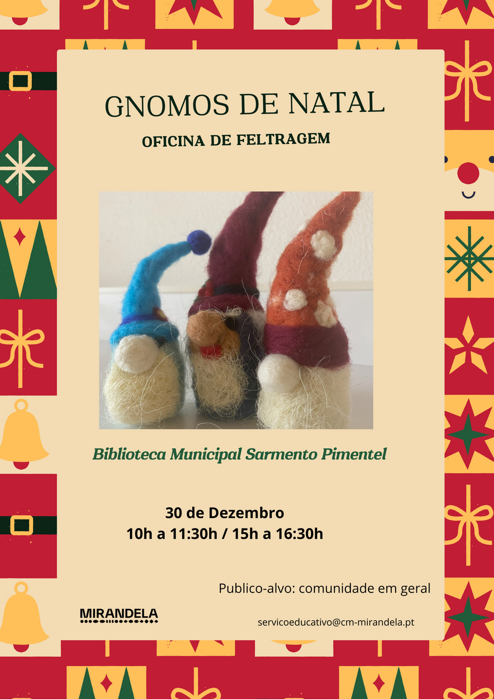 Dê asas à sua criatividade e crie o seu próprio gnomo de Natal! Nesta oficina, aprenderá a técnica de feltragem seca, transformando lã em figuras únicas com a ajuda de uma agulha especial. Uma atividade divertida e perfeita para manter o espírito natalício.