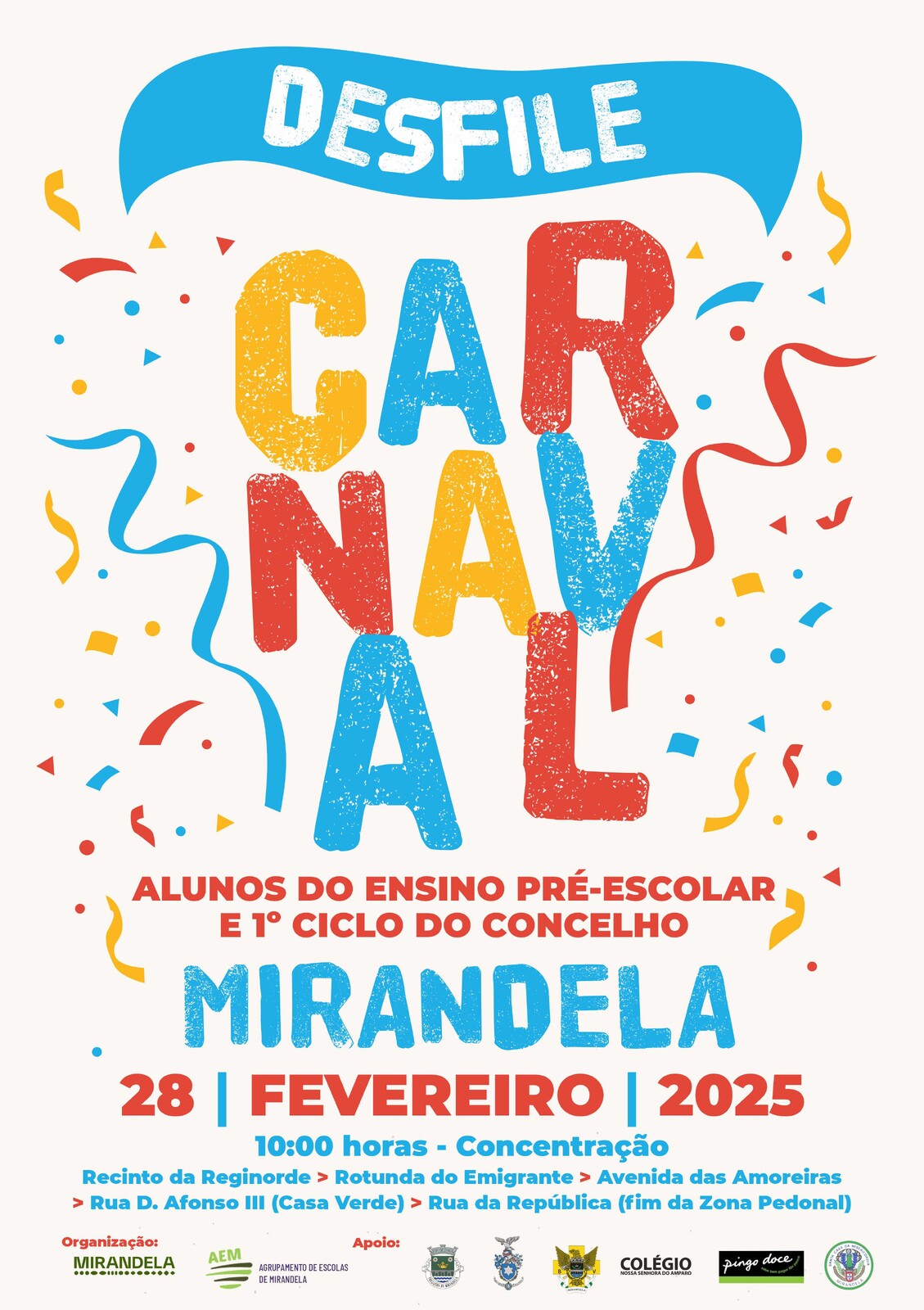Os alunos, professores e Assistentes Operacionais das Escolas do 1.º CEB e Jardins de Infância do concelho de Mirandela irão participar no tradicional desfile de Carnaval, que terá lugar no dia 28 de fevereiro.