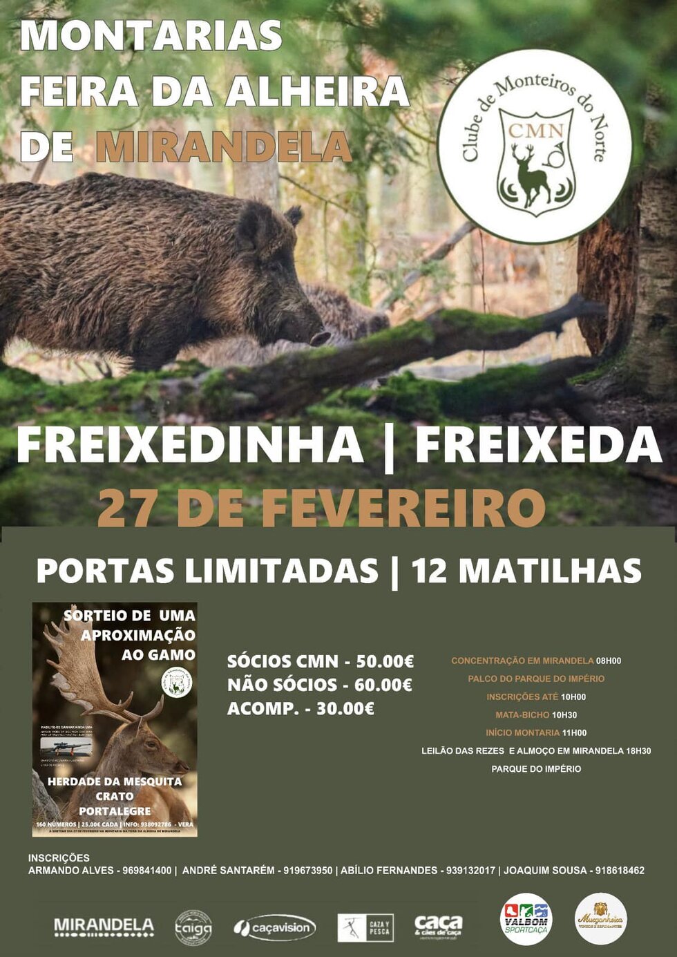 A 27 de fevereiro, realiza-se a Montaria em Freixedinha/Freixeda, inserida na programação da XXV Feira da Alheira de Mirandela.