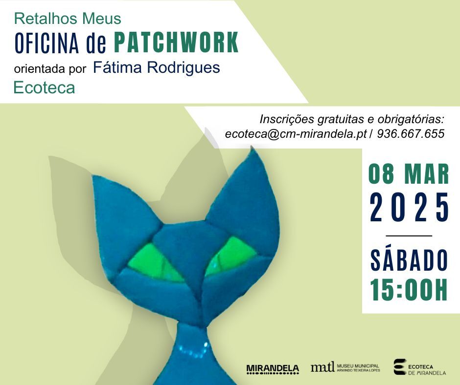 O patchwork embutido é uma técnica na qual retalhos de tecido são recortados e embutidos numa placa, ganhando nova vida e formando desenhos ou padrões, podendo posteriormente ser aplicados em diversos objetos decorativos, sem necessidade de agulha ou linha. No dia 8 de março, na Ecoteca de Mirandela, poderá aprender e colocar em prática alguns dos ensinamentos de Fátima Rodrigues, numa oficina muito especial.