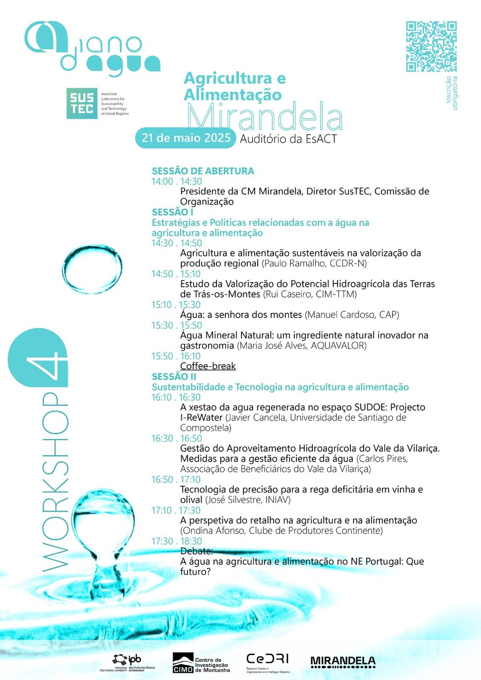 Inscrição: gratuita, mas obrigatória, através do QR Code disponível no cartaz do evento