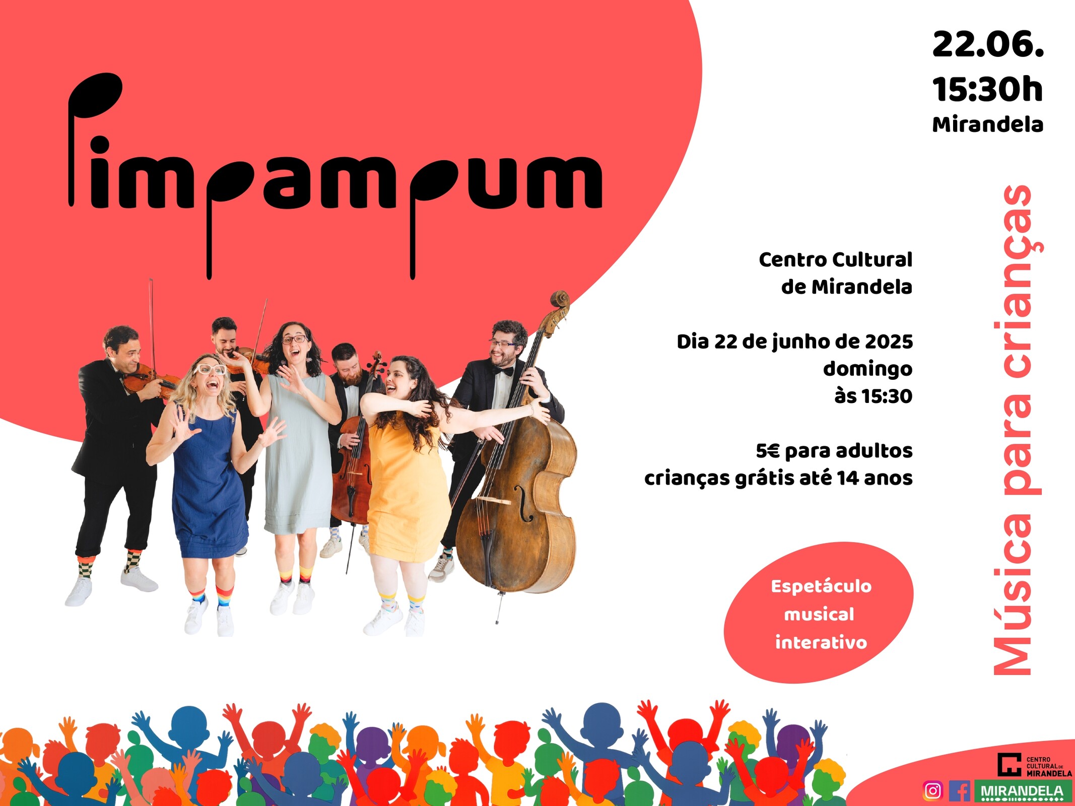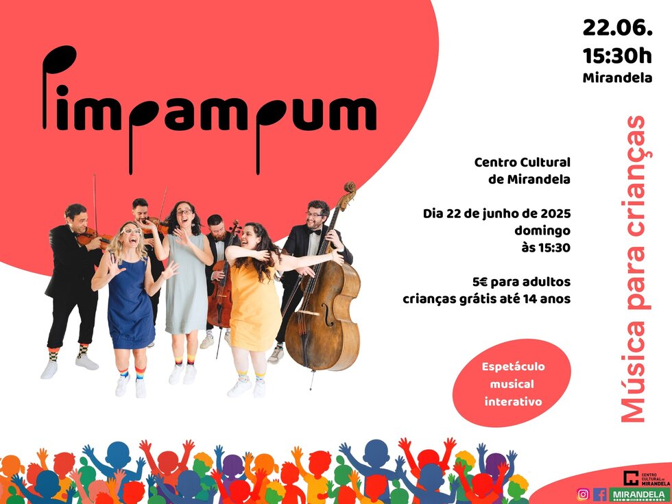 O grupo PimPamPum, formado por músicos profissionais dedicados à criação de música original para crianças, apresenta o seu primeiro álbum num espetáculo muito especial — e é em Mirandela, a terra onde nasceu este projeto único!