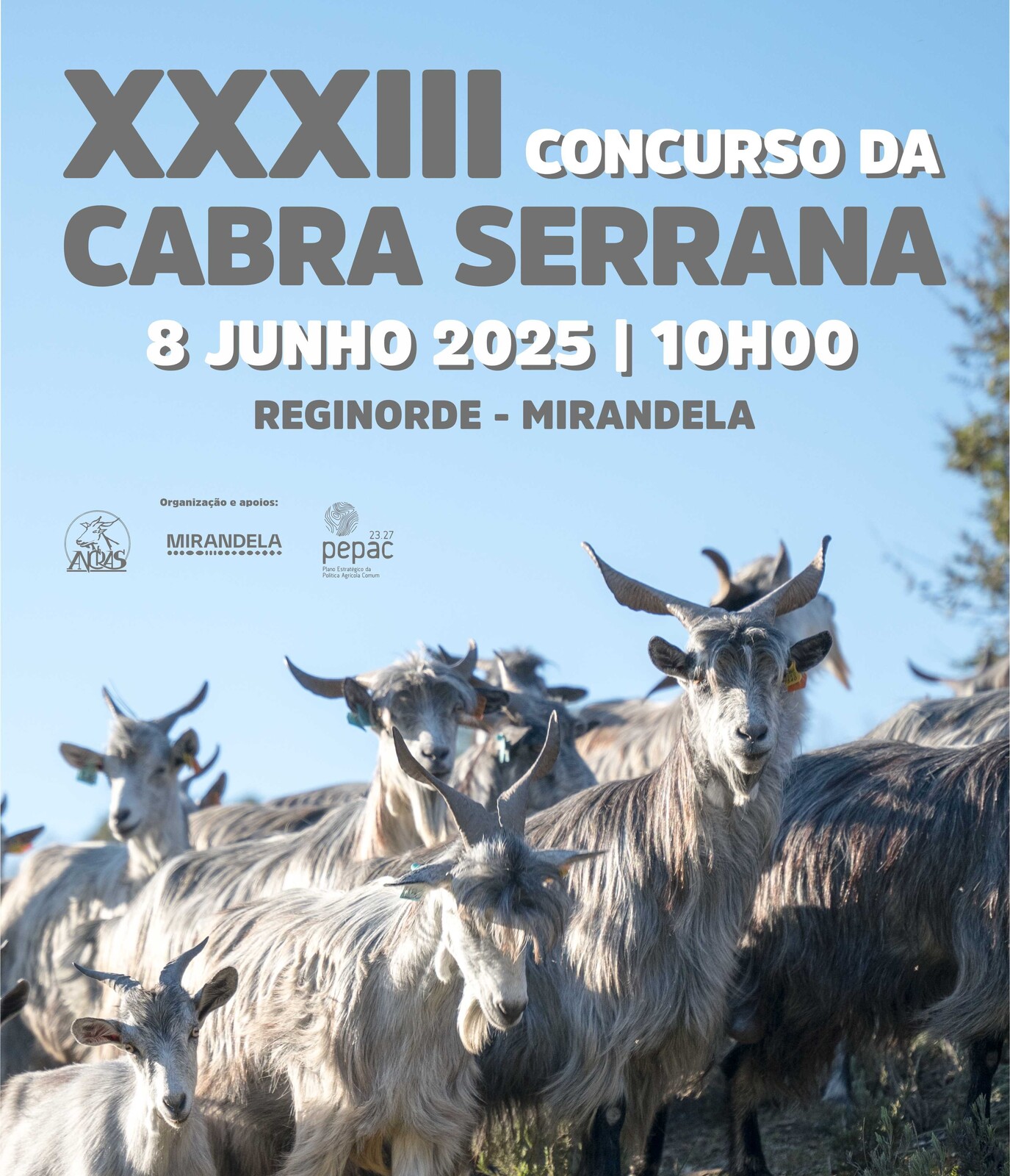 A ANCRAS – Associação Nacional de Caprinicultores da Raça Serrana, com sede no concelho de Mirandela, irá realizar, no recinto da Reginorde, a 33.° edição do Concurso da Cabra Serrana.