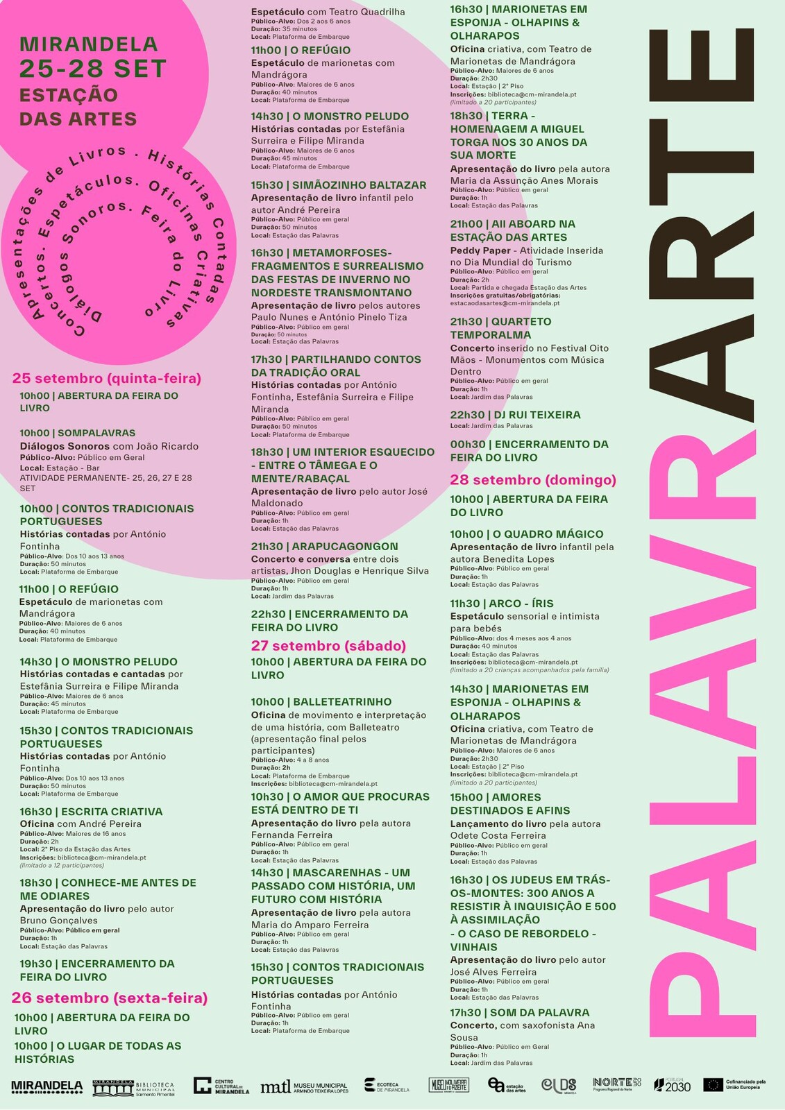 O programa inclui sessões de narração oral , diálogos sonoros, oficinas criativas, espetáculos, concertos e apresentações de livros que resgatam memórias das tradições transmontanas.