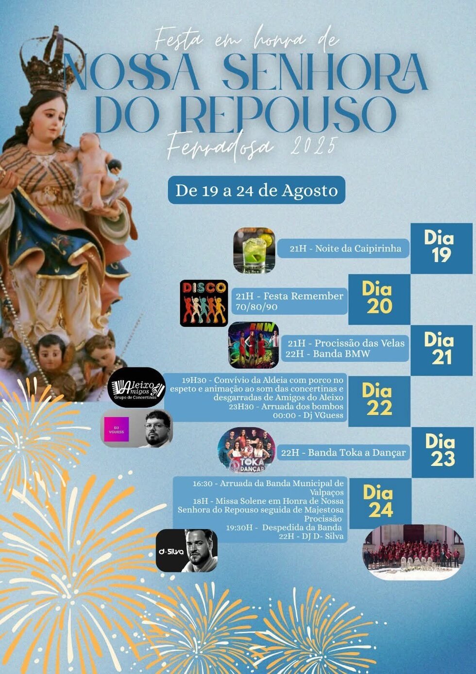 Festa em Honra de Nossa Senhora do Repouso, de 19 a 24 de agosto, na Ferradosa.