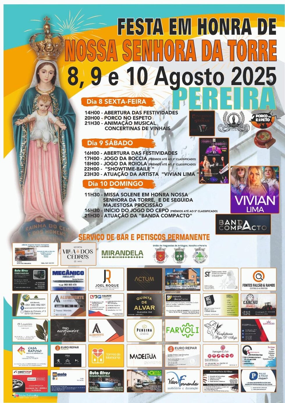 Festa em Honra de Nossa Senhora da Torre, de 8 a 10 de agosto, em Pereira.