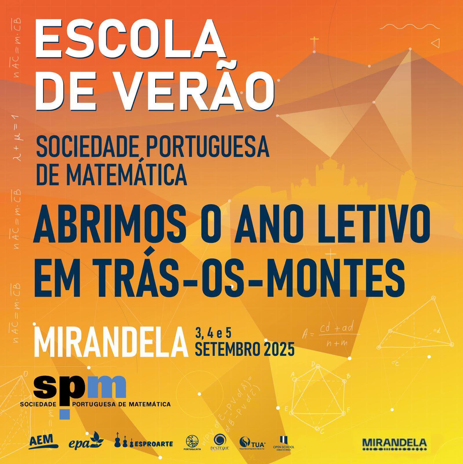 De 3 a 5 de setembro de 2025, o Auditório Municipal de Mirandela recebe a Escola de Verão da Sociedade Portuguesa de Matemática (EvSPM 2025).