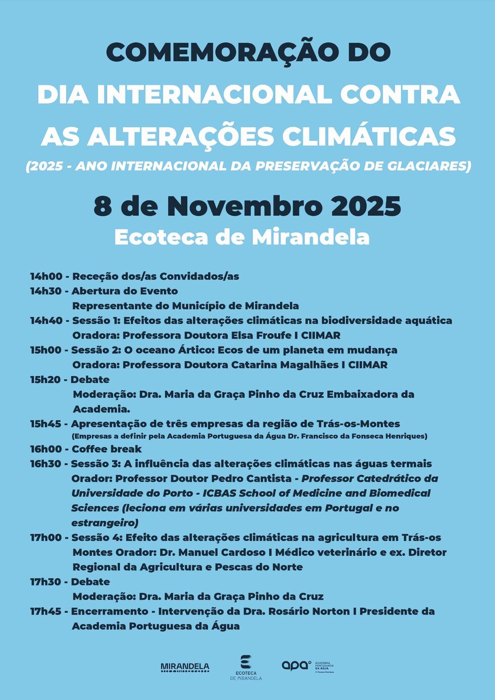 No dia 8 de novembro vamos comemorar o "Dia Internacional Contra as Alterações Climáticas”, com o tema proposto pela Organização das Nações Unidas (ONU) para 2025“ Ano Internacional de Preservação de Glaciares”