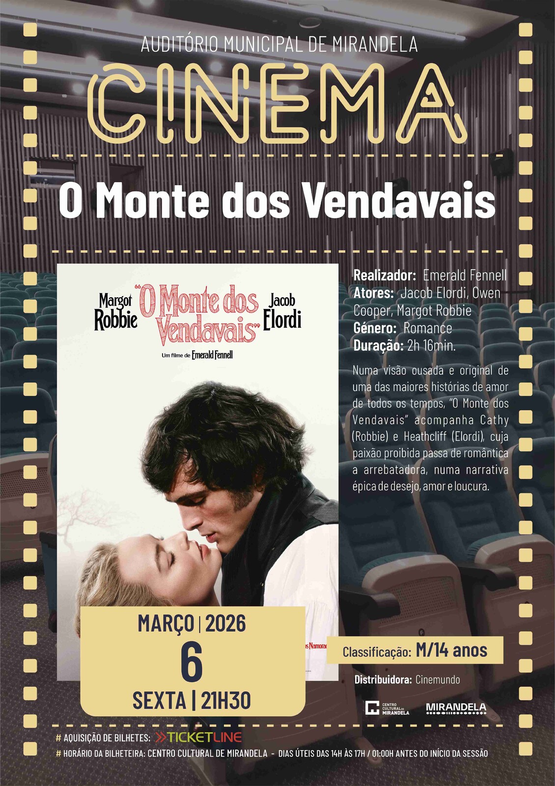 Numa visão ousada e original de uma das maiores histórias de amor de todos os tempos, “O Monte dos Vendavais” acompanha Cathy (Robbie) e Heathcliff (Elordi), cuja paixão proibida passa de romântica a arrebatadora, numa narrativa épica de desejo, amor e loucura.