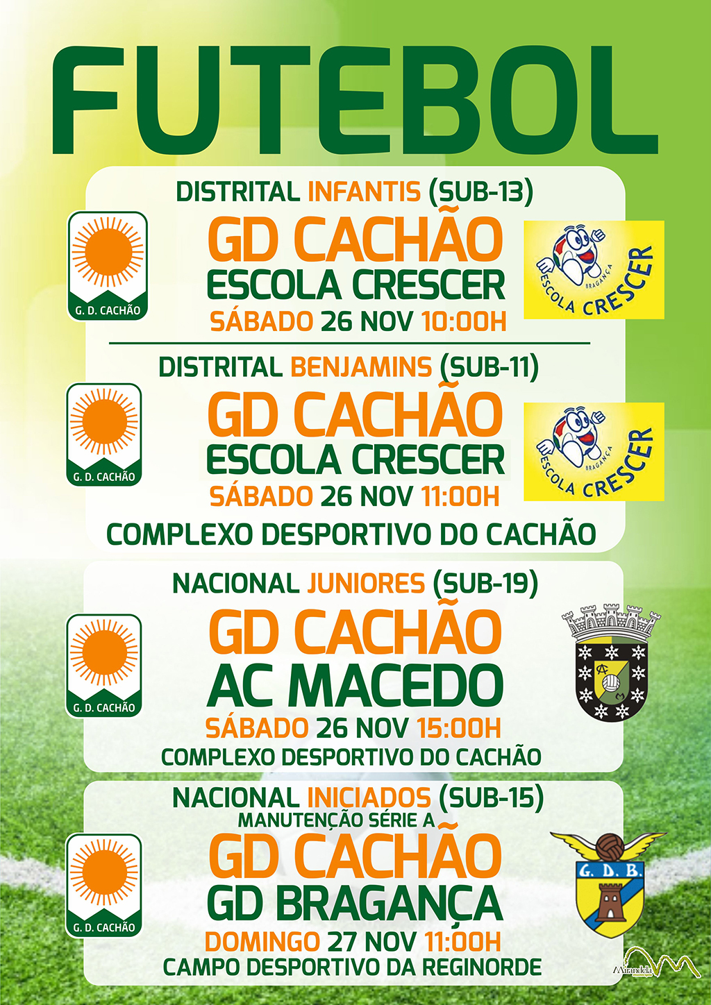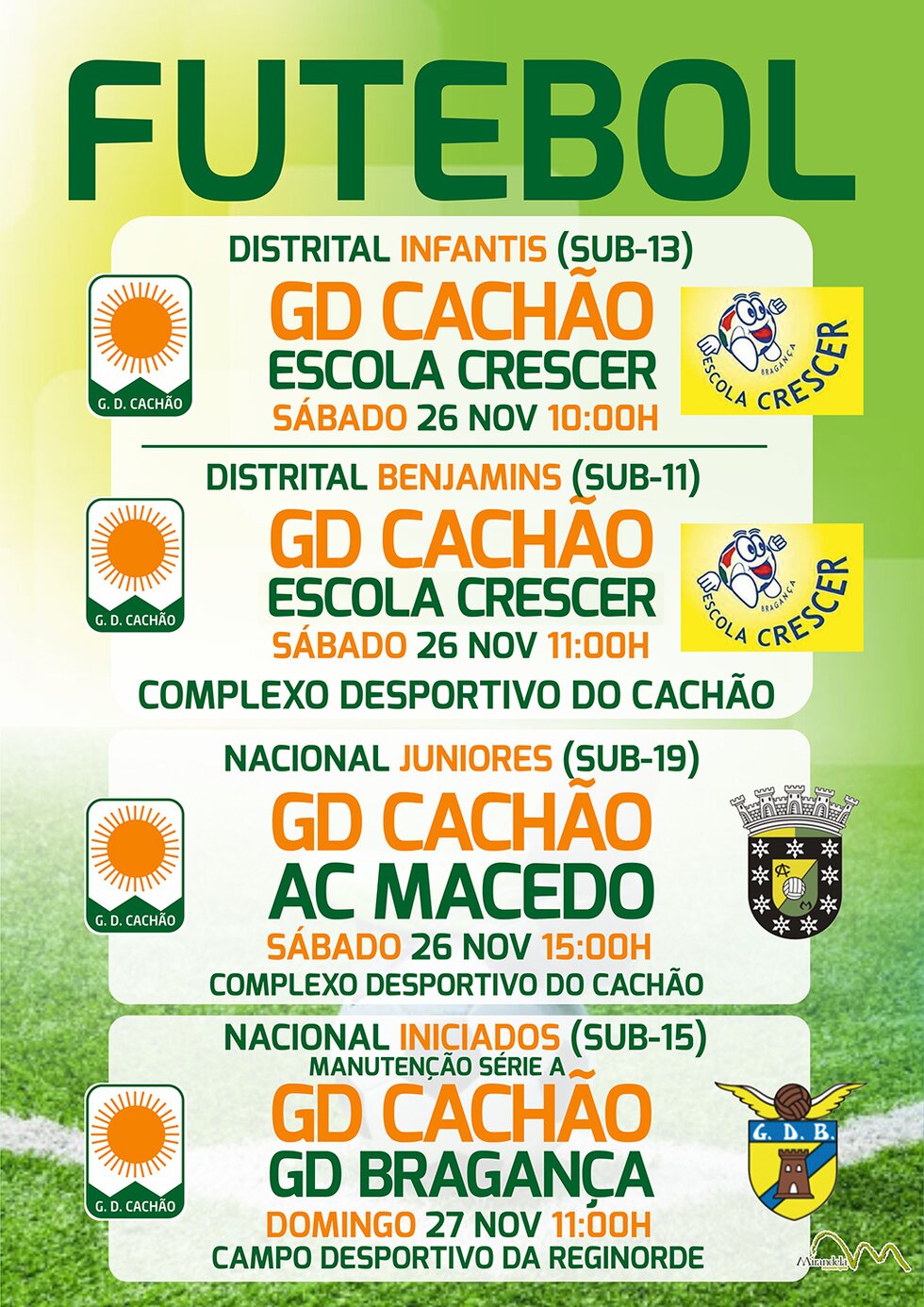Futebol: Distrital de Infantis, Benjamins e Juniores, Nacional de Iniciados (G. D. Cachão) |